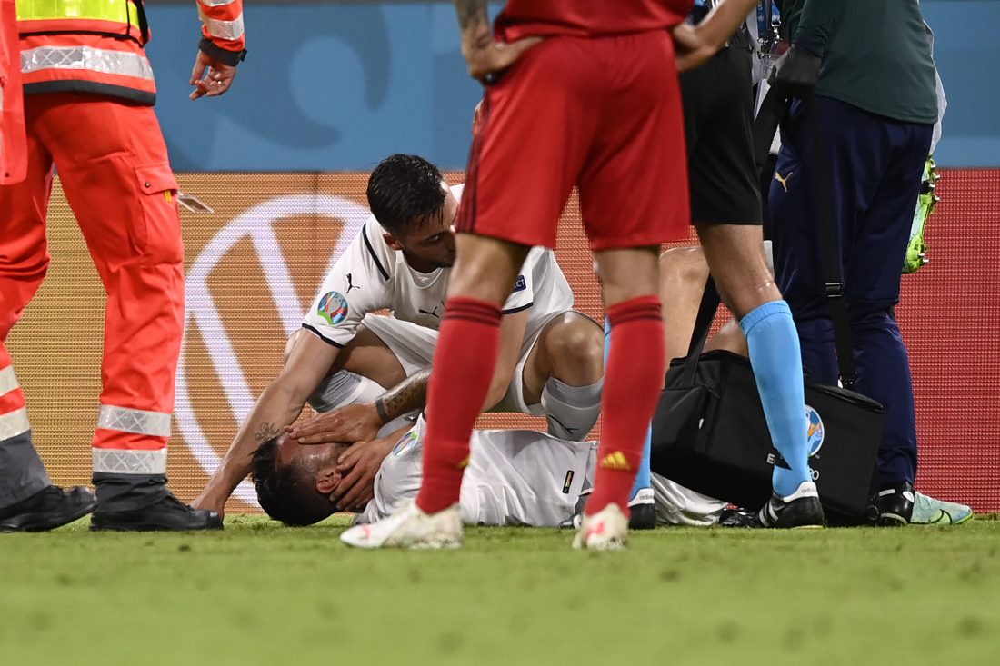 İtalya'nın belçika ile oynadığı çeyrek final maçında sakatlanan maçın bitimine 15 dakika kala uzun bir pasa hareketlenen spinazzola, birden acı içinde kendini yere bıraktı ve kenara değişiklik işareti yaptı.